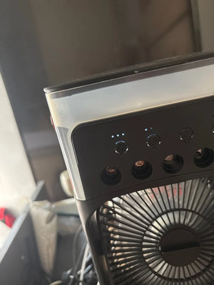 Sommaren kan vara tuff, men med denna bärbara luftkylare kan du skapa din egen oas. Fyll tanken med is och vatten, och njut av omedelbar svalka. Perfekt för varma dagar hemma, på kontoret eller utomhus. Känn hur hettan försvinner och du kan koppla av och njuta av sommaren utan stress.