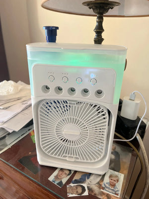 Kämpa inte längre med hetta och svettiga nätter. En liten luftkylare ger snabb svalka med is och vatten.